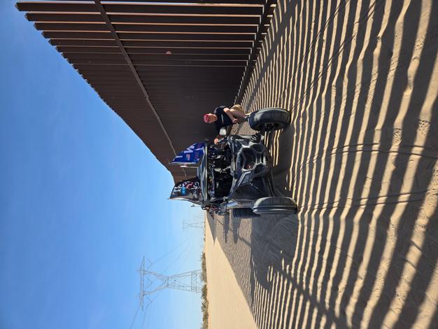 Spent a wonderful day at a place called glamous in south California. Right at the border with mexico. Glamous is a place of endless sand dunes and a group of us meet regularly. Two test our medal on the challenges of high peaks of sand and wonderful views, and simply relaxy in off road vehicles. This picture is at the border wall. Pat, just about the southernmost part of California, about 40 miles east of Yuma, Arizona, where we had the opportunity to drive our vehicles right up to the wall and salute number 47 and the challenges. That he and phone the conservative party face after january twenty.